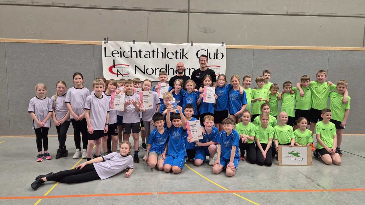 Zehn Grundschulen mit 133 Kindern in zwölf Teams gingen am vergangenen Sonnabendmorgen in der Deegfeld-Sporthalle an den Start der 25. Nordhorner Leichtathletikmeisterschaft. Der LCN hatte eine Woche vor den Osterferien Kinder der dritten und vierten Klassen zum Dreikampf aus Laufen, Werfen und Springen sowie einem abschließenden Staffelwettbewerb eingeladen. Eine oft erprobte und vorbildliche Organisation mit kindgerechter Präsentation zeichnete den Veranstalter erneut aus.